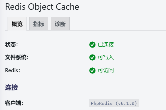 搞定这些后重启wordpress容器,Redis Object Cache就显示可访问Redis了,我启用缓存后网站突然就挂了,说连接不到127.0.0.1:6379,我寻思我redis用的是docker网络里的主机名啊,也不是127.0.0.1。报错提示让我把wp-content目录里的object-cache.php删了就能恢复正常,我打开这个文件一看,又是个配置文件,搜索6379后定位到配置那几行