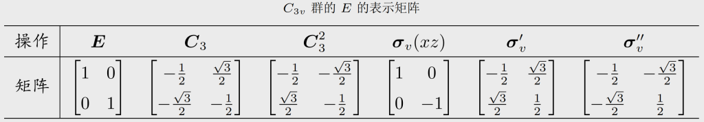 通过投影算符\(\hat{P}^E\),我们将函数\(f=xz+yz+z^2\)投影到不可约表示\(E\)所对应的子空间中,获得了一个\(xz\)与\(yz\)的线性组合,不难看出这两个就是不可约表示\(E\)的基。