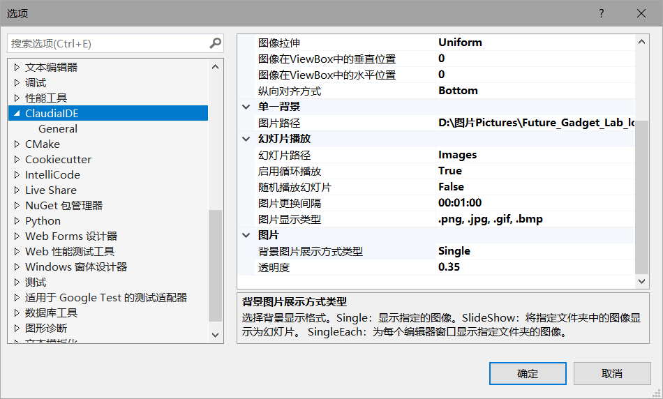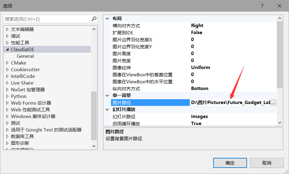 安装完成后在菜单栏打开工具-选项,左侧菜单栏下拉找到ClaudiaIDE