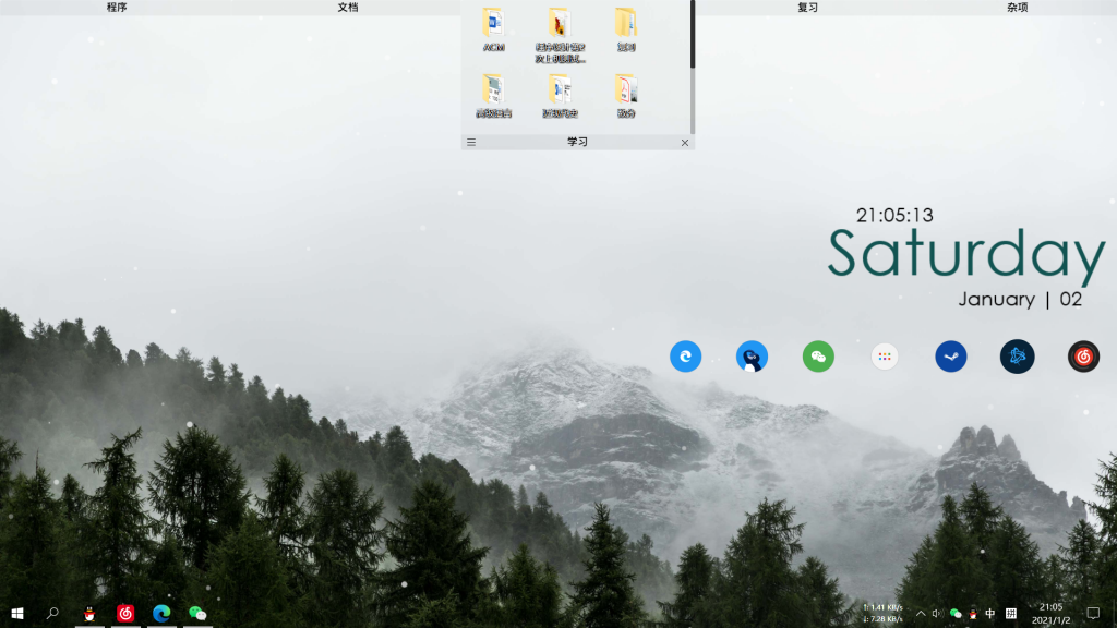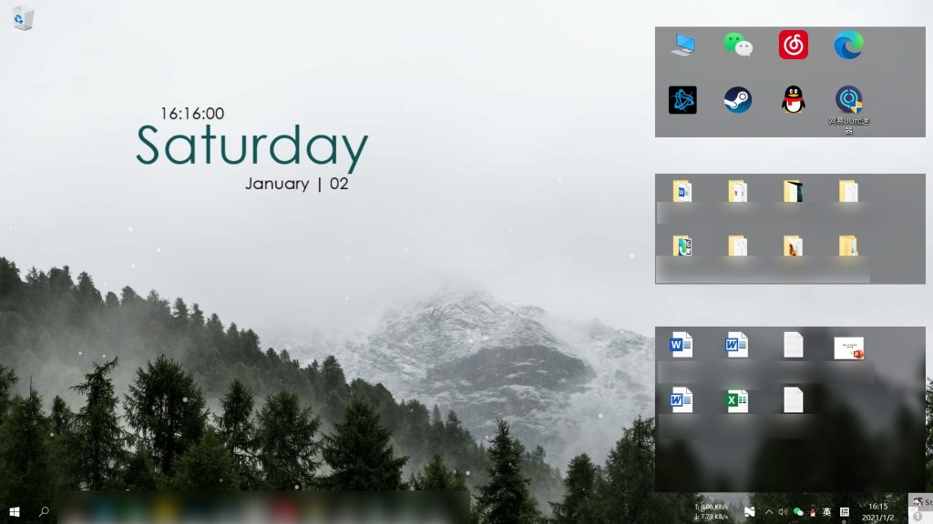 我使用这个软件将桌面上的文件分类放在了顶部,并将这几个分区设置了靠边自动隐藏,极大地节省了桌面空间。