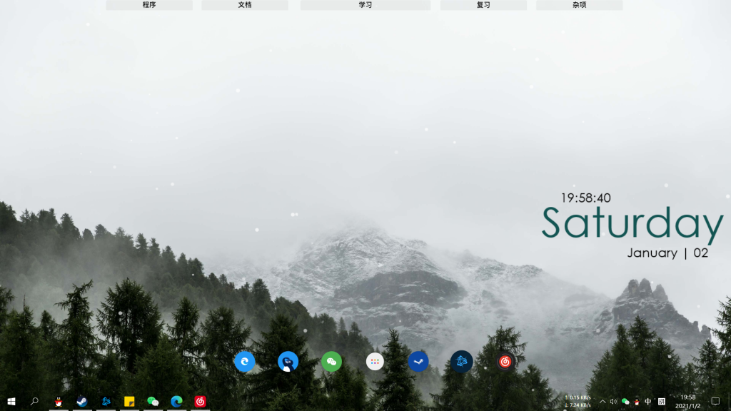 使用的软件有四个:Fences3、Rainmeter、Wallpaper Engine和TranslucentTB